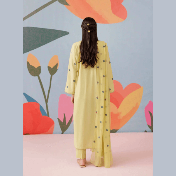 Elevate your wardrobe with this intricately embroidered three-piece suit from the latest Pret Summer Collection, a perfect fusion of traditional charm, modern elegance, and seasonal comfort.