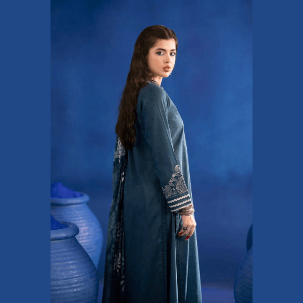 3 Piece – Printed Embroidered Suit – PE25-93 INDIGO