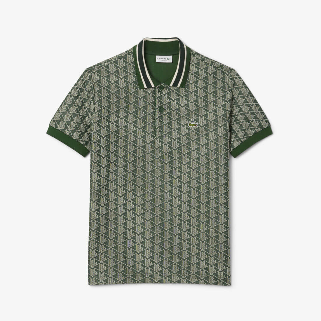This polo shirt offers a new, original take on the iconic design created by Lacoste in 1933. The jacquard knit monogram motif, ribbed trim, and contrast striped collar will help you stand out from the crowd. A resolutely modern design, blending comfort and elegance.