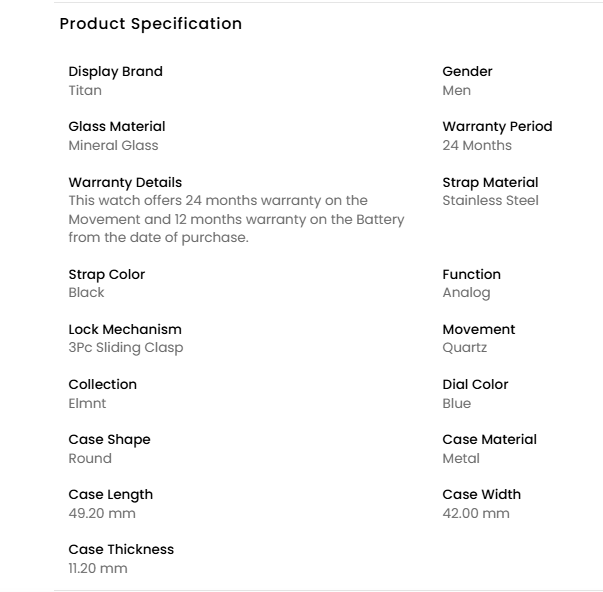 Titan Elmnt Black Dial Analog Stainless Steel Strap Watch for Men