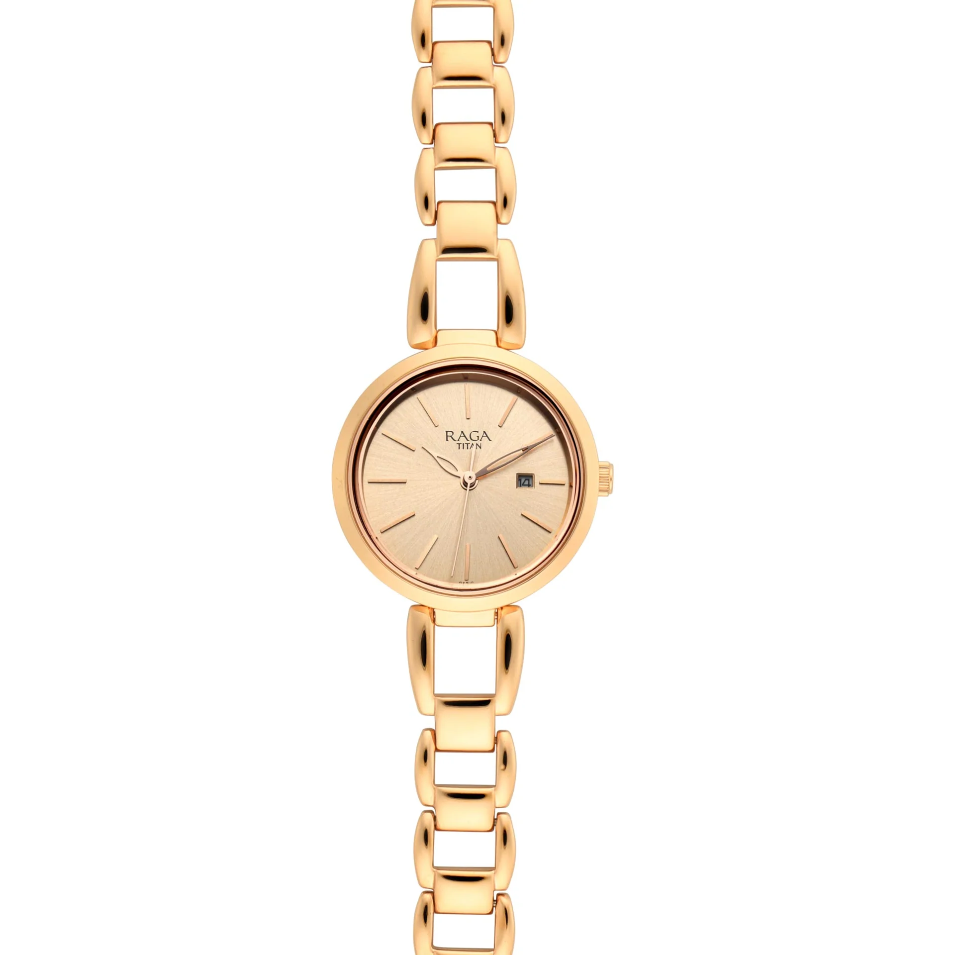Titan Raga Viva Rose Gold Dial Quartz Metal Strap Watch for Women